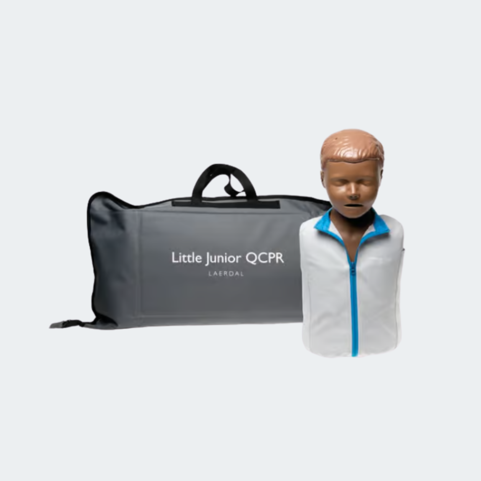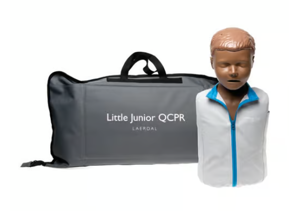 Little Junior QCPR Dark is a CPR manikin designed to represent a four-year-old child. The manikin is Bluetooth enabled for QCPR app compatibility and includes a port to connect a SkillGuide device.