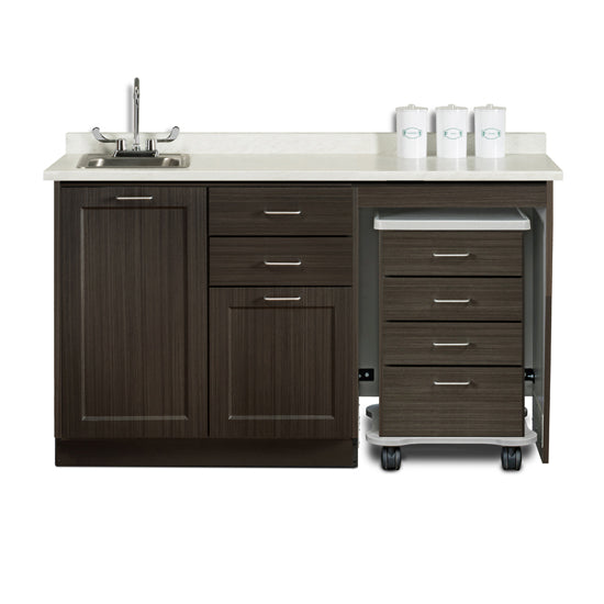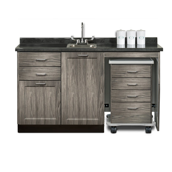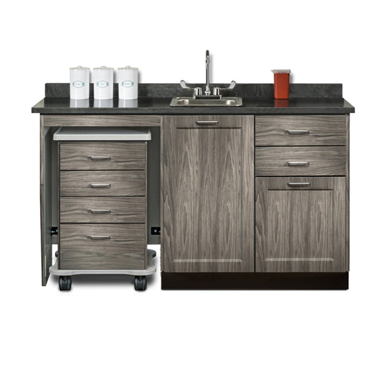 Matching Fashion Finish cart with 4-drawers, 3" swivel casters, plastic bumper and one-piece, vacuum-formed, gray-haircell, textured, top rimmed on all sides