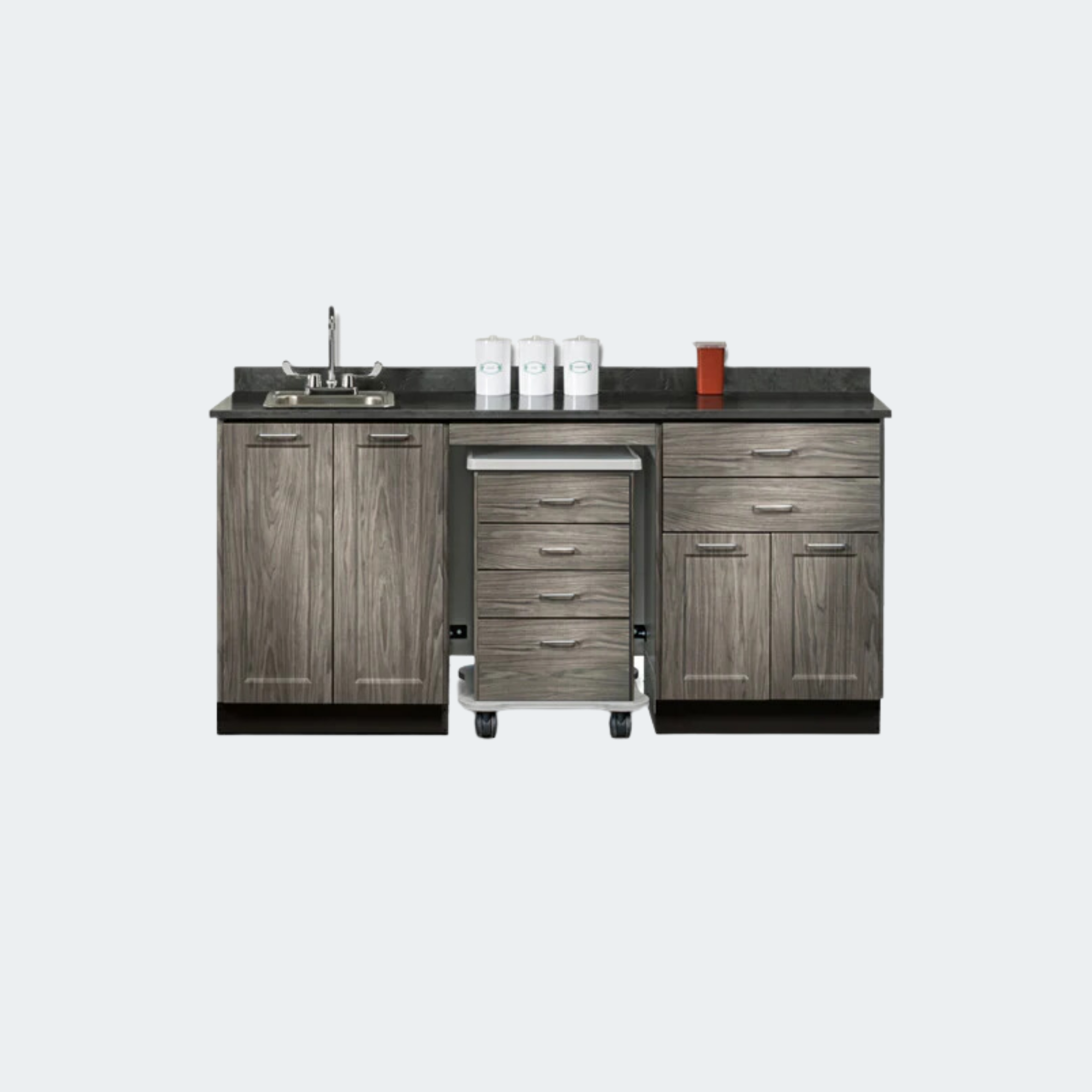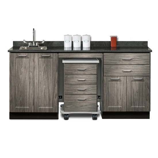 Matching Fashion Finish cart with 4-drawers, 3" swivel casters, plastic bumper and one-piece, vacuum-formed, gray-haircell, textured, top rimmed on all sides