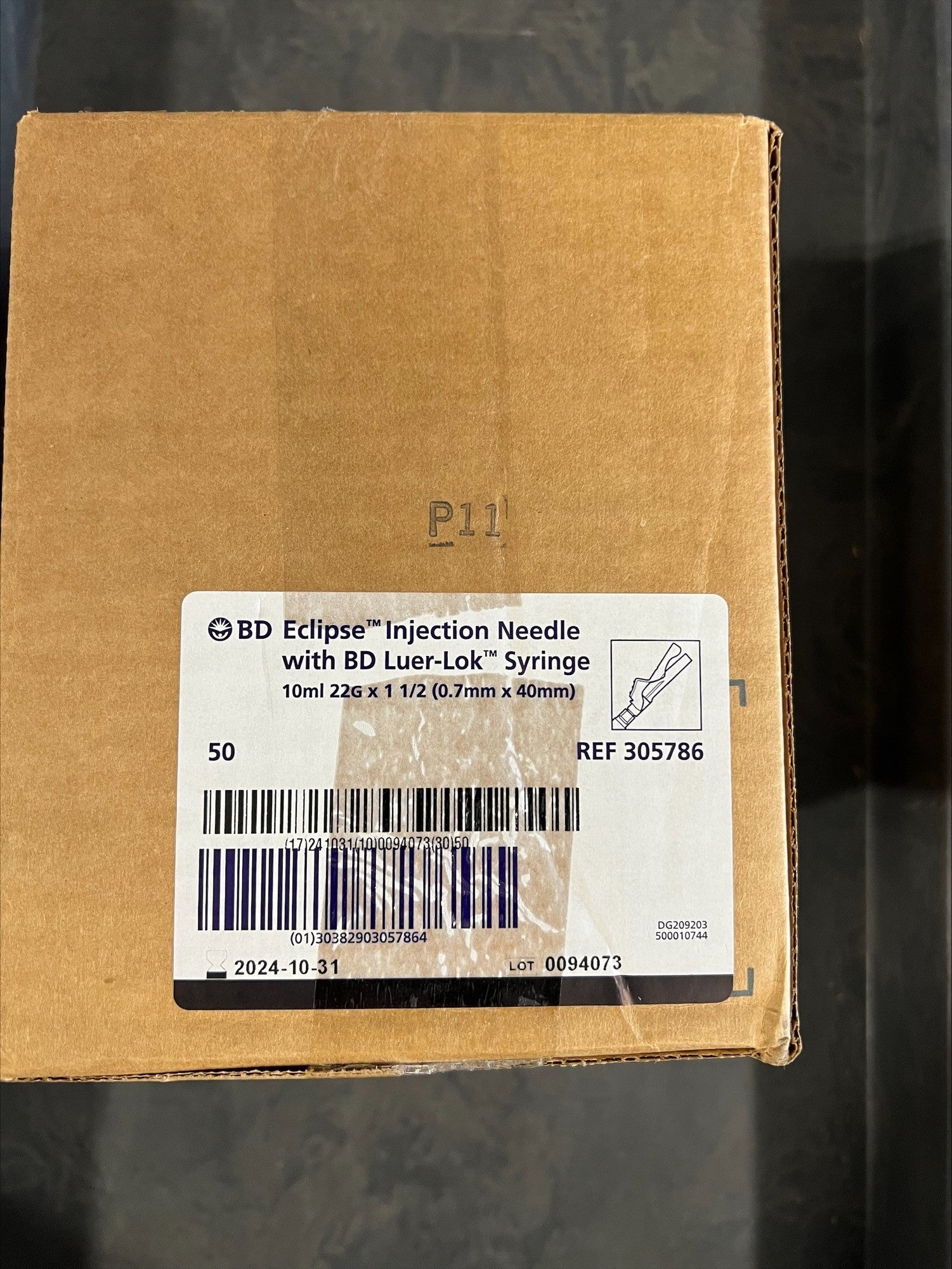 BD Eclipse Needle Syringe HYPO Safety 22Gx1.5" 10mL 50/BX 6B/CA
