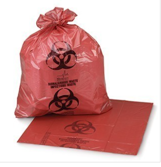 Bilingual imprint (English and Spanish) with universal biohazard symbol