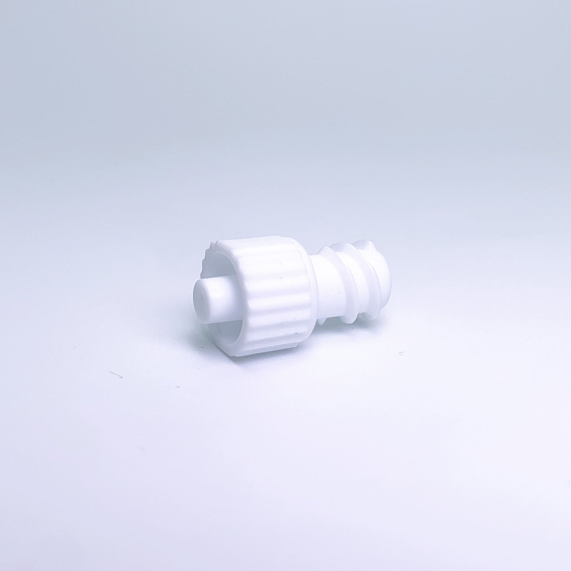 This cap is a make/female dual end cap. The cap provides a non-injectable end cap. This cap does not provide a through fluid path. This Cap is also known as a Duel End Cap.
