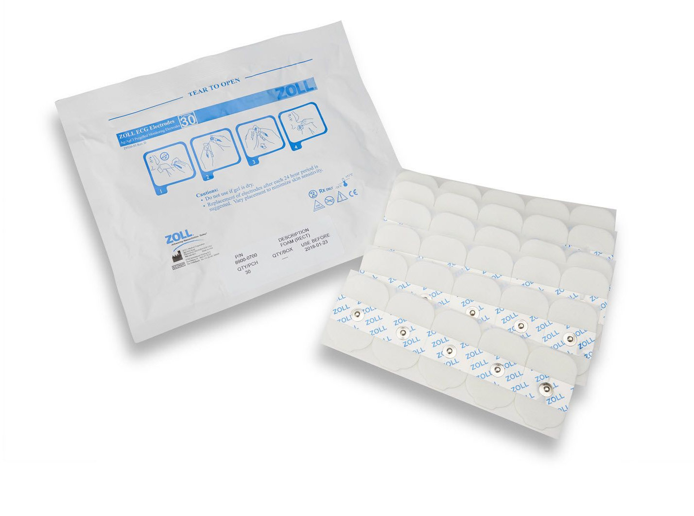30 ECG Rectangular Electrodes, 6 Strips of 5 Per Pouch/600 Per Case