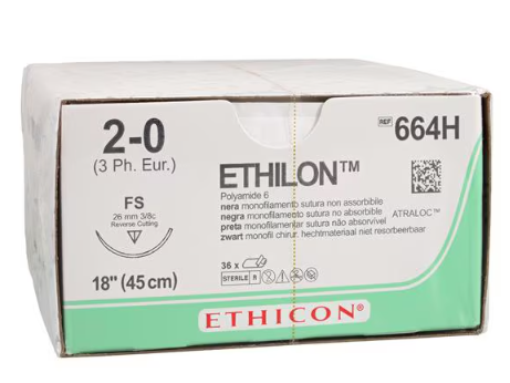 Ethicon 664G Ethilon Nylon Suture, Monofilament, 2-0 Non-Absorbable FS Black 18"