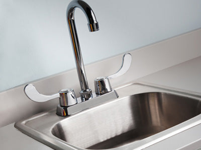 • Stainless steel sink with wing lever, chrome faucet set