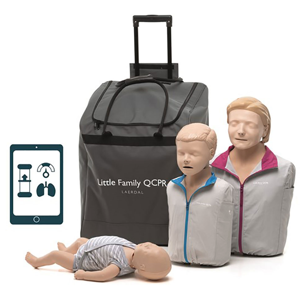 Laerdal's Little Family Pack is a convenient package of CPR training manikins representing the focus age groups for CPR training. It contains