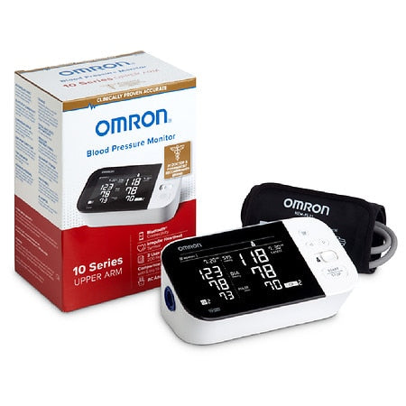 The OMRON 10 Series Wireless Upper Arm home blood pressure monitor (BP7450) has a horizontally designed dual-display monitor and stores up to 200 readings for two users (100 per user). Sync via Bluetooth to the free OMRON Connect app for unlimited memory, graphs and trend tracking, as well as unlimited users. The OMRON Connect app works with iOS and Android devices. Omron is the #1 doctor and pharmacist recommended brand of blood pressure monitors and the #1 selling manufacturer of home blood pressure monitors for over 40 years. DUAL LCD DISPLAY: Shows your last reading right next to your current reading for convenient and immediate comparison WIRELESS Bluetooth ACCESS: Syncs to the OMRON Connect app on your iOS or Android devices (for a complete list of compatible devices, visit OmronHealthcare.com/connect) MEMORY STORAGE: Accommodates two users, storing up to 200 readings (100 readings per user) on one device TruRead TECHNOLOGY: Allows you to automatically take three consecutive readings at intervals you can customize (15 seconds, 30 seconds, 60 seconds, or the optimal two-minute rest period between readings) and then displays the average EASY TO READ & COMFORTABLE: Backlit LCD Display features high-contrast, black backlit screen with extra-large numbers, while the easy-wrap ComFit cuff is pre-formed to feature total arm circumference inflation and fits arms 9 to 17 inches in circumference.