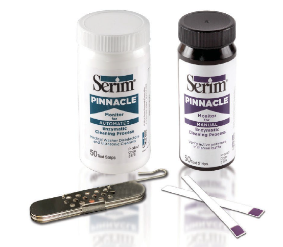 PINNACLE product line is used to monitor the cleaning efficacy of medical washer-disinfectors, ultrasonic cleaners, and manual cleaning processes when using enzymatic detergents. Our PINNACLE AEC test monitors all critical aspects of the cleaning process including enzyme concentration and activity, time, temperature, and mechanical action
