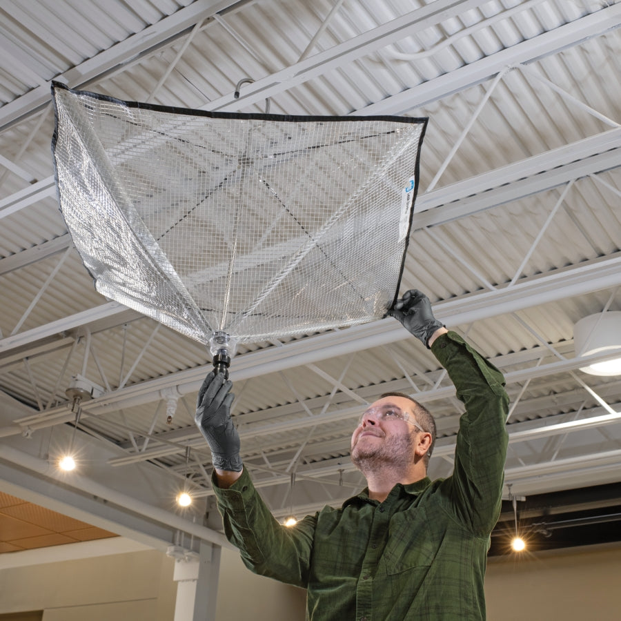 Installs faster than any leak diverter tarp in our offering! Channel away roof or ceiling leaks before it damages inventory and machinery or causes a slip hazard.