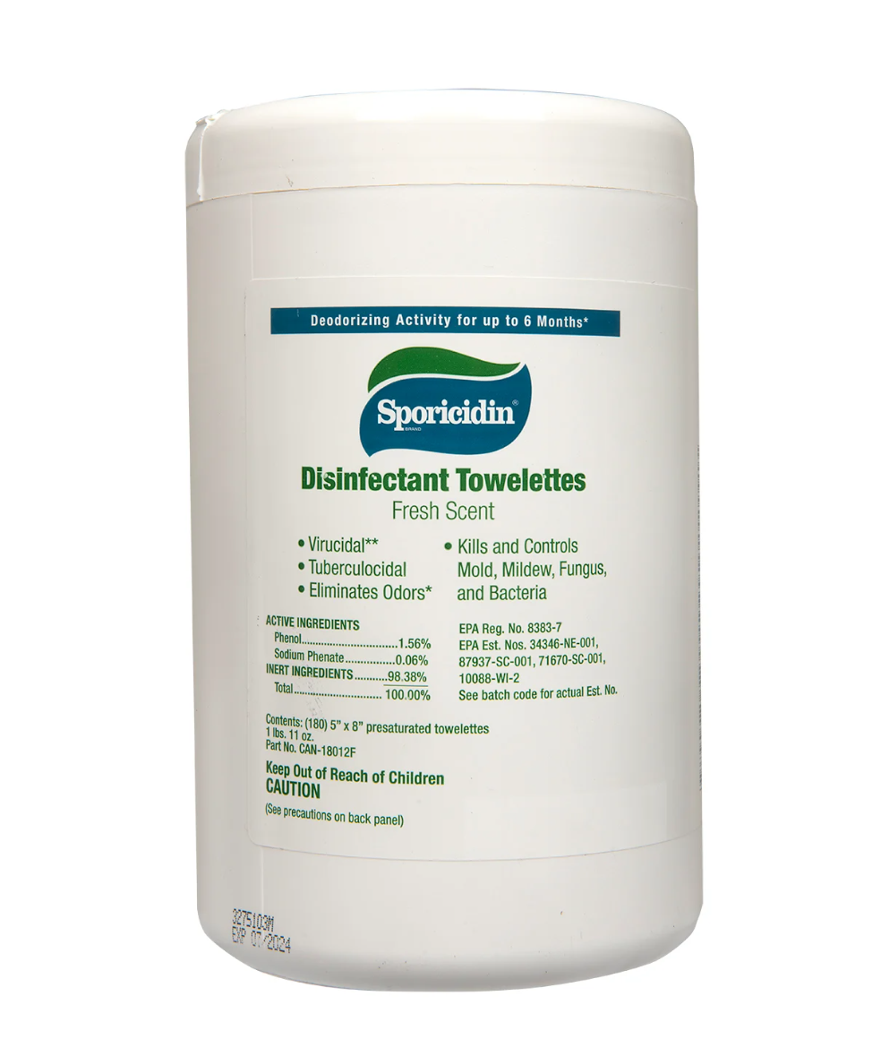 Sporicidin® Disinfectant Wipes and Towelettes are EPA-registered disinfectant wipes trusted by healthcare and restoration professionals since 1978. Ideal for use in hospitals, medical and dental offices, veterinary clinics, and during restoration projects, these disposable wipes.