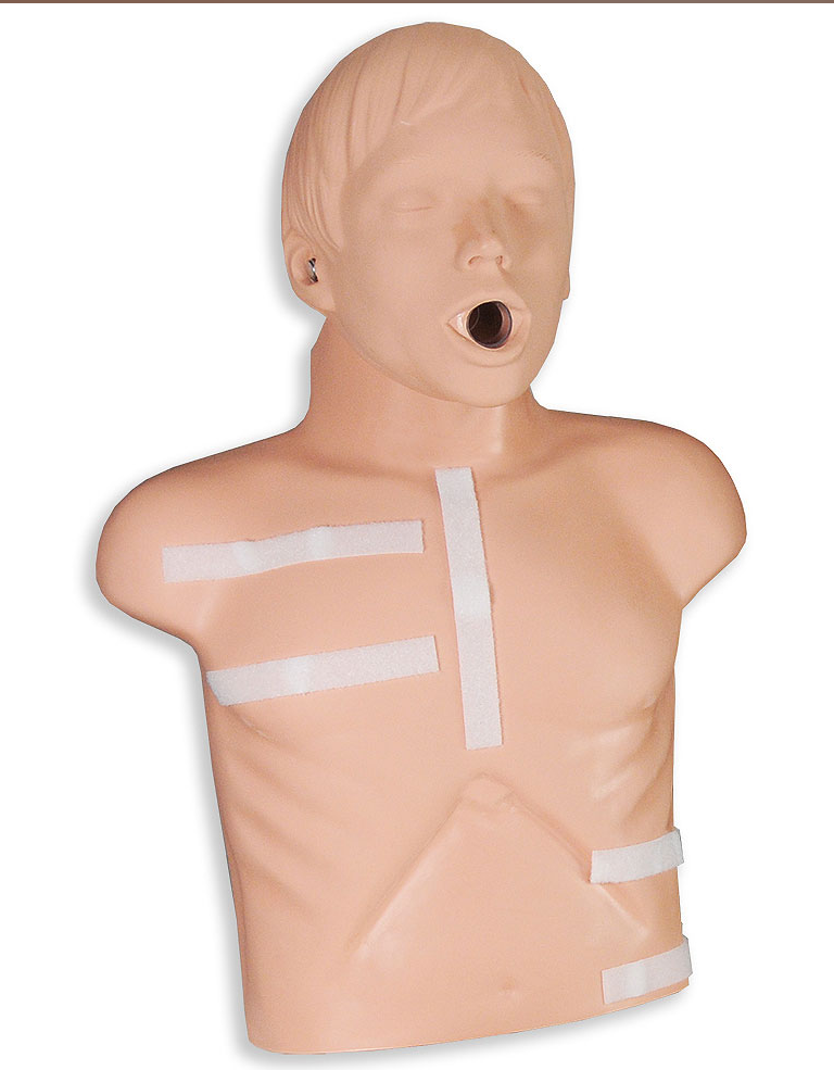 AED Plus® Demo Manikin. Includes manikin torso with velcro strips attached and a separate head with hardware for attachment
