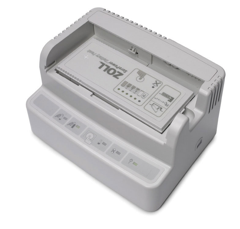 Charges the ZOLL SurePower & SurePower II defibrillator batteries. Designed to accommodate future chemistry variants.